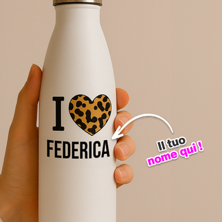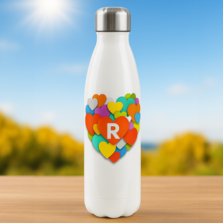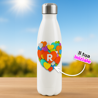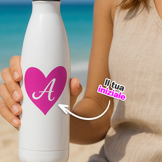 Borraccia Bianca in Acciaio 304 doppia parete 500ml Personalizzata con cuore fuxia e iniziale