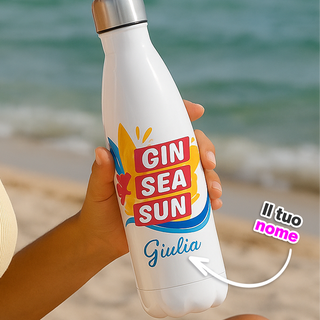 Borraccia Bianca in Acciaio 304 doppia parete 500ml Personalizzata Gin - Sea - Sun con nome
