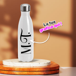 Borraccia Bianca Personalizzata con iniziali, 500ml Acciaio 304 Doppia Parete