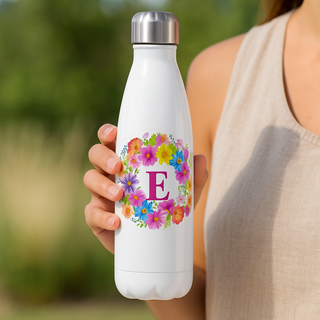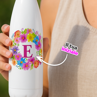Borraccia Bianca in Acciaio 304 doppia parete 500ml Personalizzata con fiori e iniziali