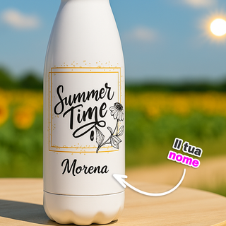 Borraccia Bianca in Acciaio 304 doppia parete 500ml Personalizzata Summer Time e iniziali