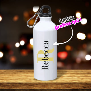 Borraccia in Alluminio 500ml Bianca Personalizzata con iniziali e nome